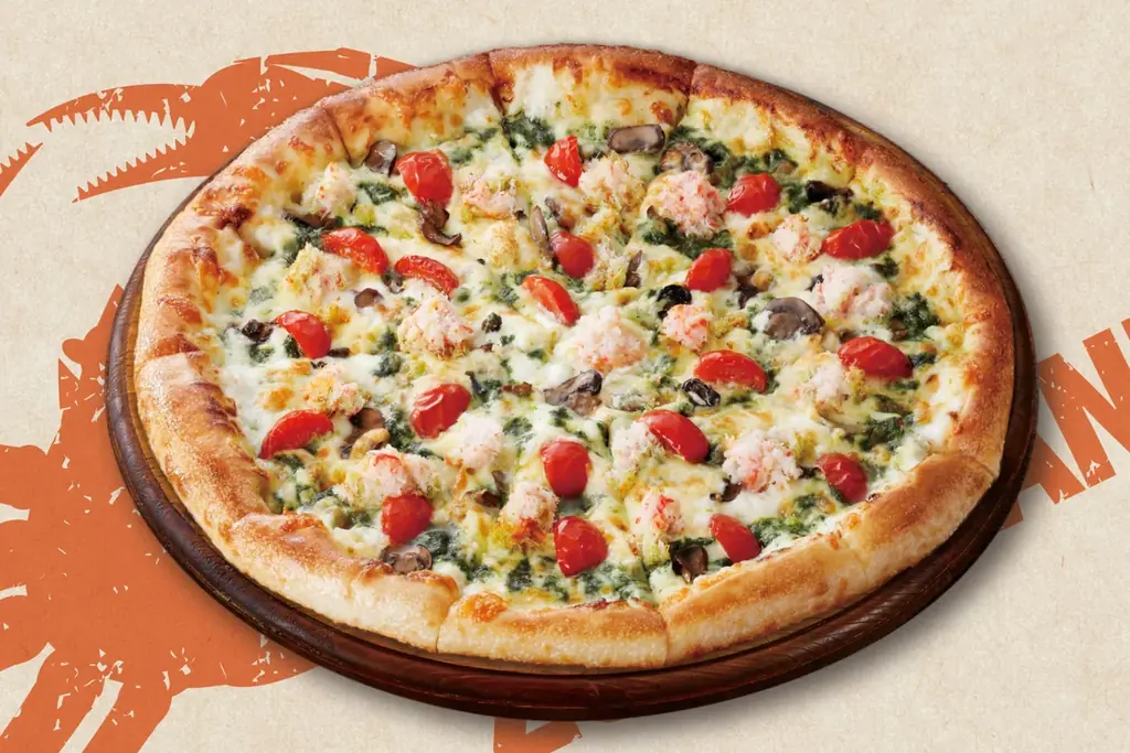 説明:贅沢にのせたズワイガニの甘みと旨味が、まろやかなトマトクリームソースと溶け合い、上品で深みのあるリッチな味わいに仕上げたピザです。トマトクリームにはオニオンが含まれています。