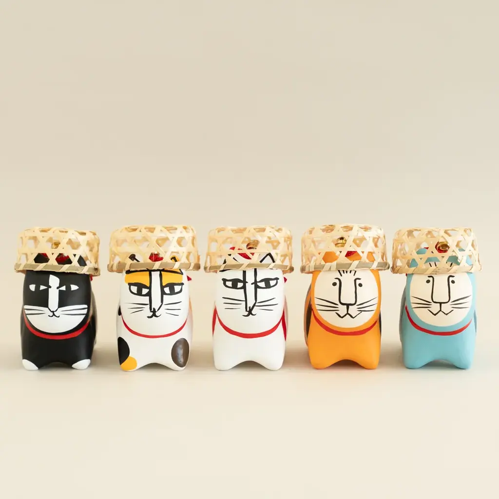 - 伝統的な張り子の表現を取り入れた猫モチーフ。素材感や塗装の風合いが魅力です。