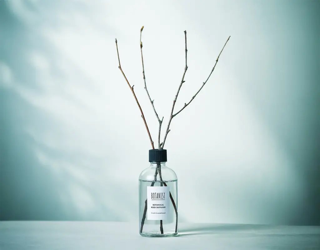 リードスティックは一本一本形が異なり、同じ形のものは存在しません。素材そのものが持つ個性がそのまま空間演出の要素となるため、量産品にはない自然の味わいが感じられるのが特徴です。また、白樺はBOTANISTのシャンプー・トリートメントのキー成分の一つでもあり、ブランドの原点に根差した素材利用でもあります。