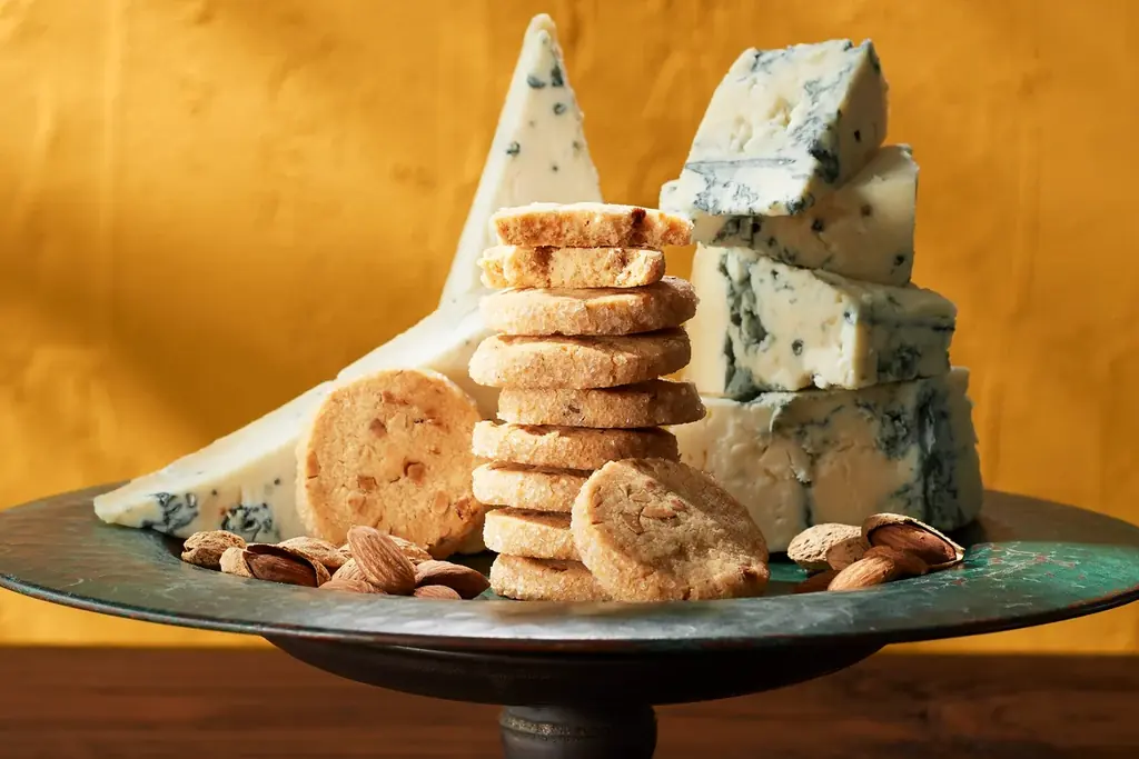 濃厚なゴルゴンゾーラと皮付きローストアーモンドを組み合わせたクッキーで、側面にまぶされたシュガーが塩味を際立たせ、気品ある味わいを演出します。