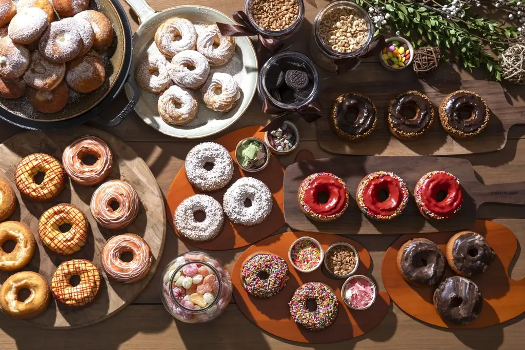 加えて20種類以上のソースやトッピングが揃い、自分好みにデコレーションしてオリジナルドーナツを作ることができます。デコレーション済みのドーナツも多数用意され、視覚的にも楽しめるよう設計されています。