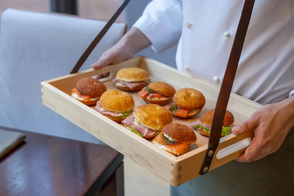 セイボリーはブッフェ台に並ぶほか、スタッフがテーブルを回りながら提供する形式も取り入れられます。甘いものと塩味のバランスをとることで、食事としての満足度を高める設計です。
