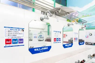 - セゾン投信の世界観での館内装飾:入口の暖簾、脱衣所、洗い場まで同社の世界観でジャック