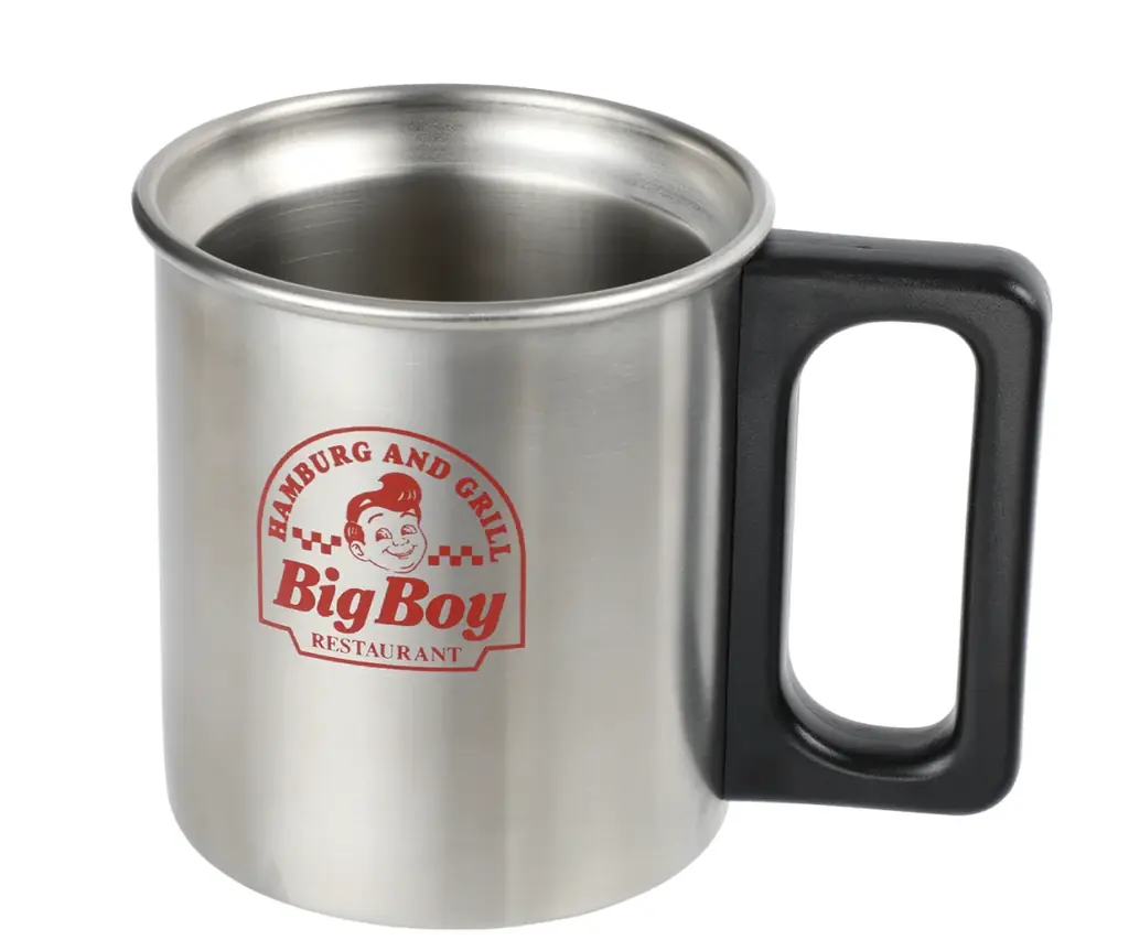 説明:シンプルなオリジナルロゴ入りのワンポイントデザインステンレスマグ。家庭・オフィス・アウトドアで使用可能。ただし真空構造ではありません。