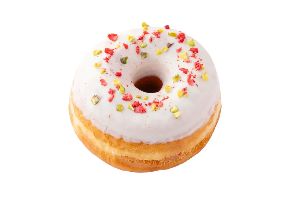 ピンクスプリンクルズ アイスケーキ(PINKSPRINKLES ICED CAKE) 380円:ケーキ生地のドーナツにピンクアイシングとスプリンクル。