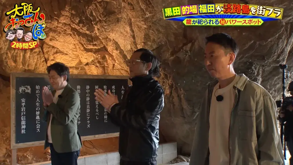 - 安乎岩戸信龍神社(あいがいわどしんりゅうじんじゃ):淡路島のパワースポットとして紹介され、的場の神社仏閣好きを踏まえた参拝が行われる。