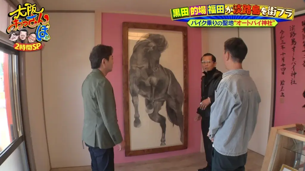 - 淡路島オートバイ神社:的場・福田はバイク愛好家として話が弾む。ここでは黒田の妻が来年の干支・馬の絵を奉納していた事実が明かされ、その迫力が的場と福田の感動を誘う。