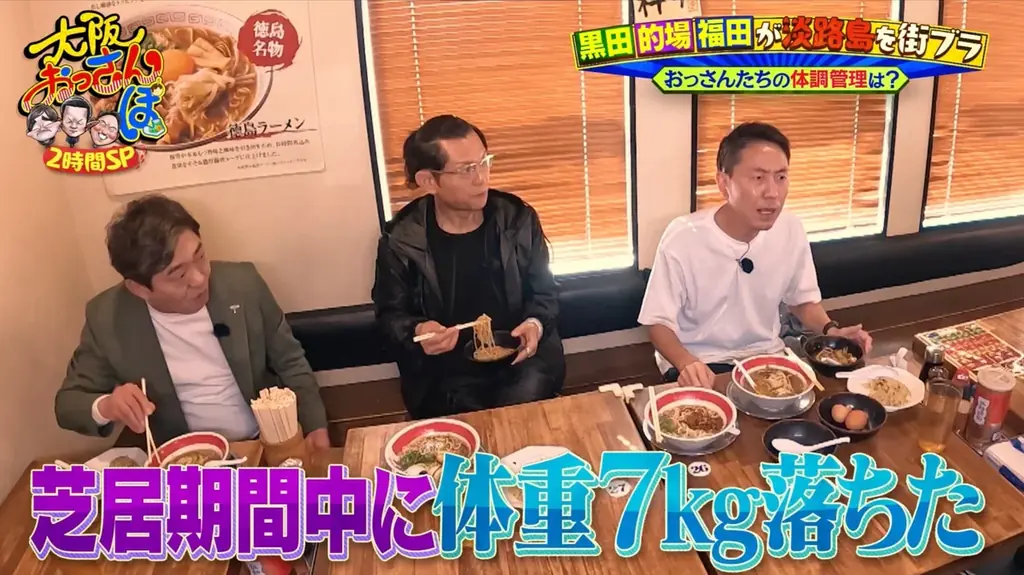 番組はクセのある“おっさん”たちの率直なトークと庶民感覚による街歩きが特徴で、今回の舞台は大阪を離れ淡路島。黒田が5年前に購入した別荘が登場することも話題となっている。制作はテレビ大阪、著作表記は(C)テレビ大阪である。