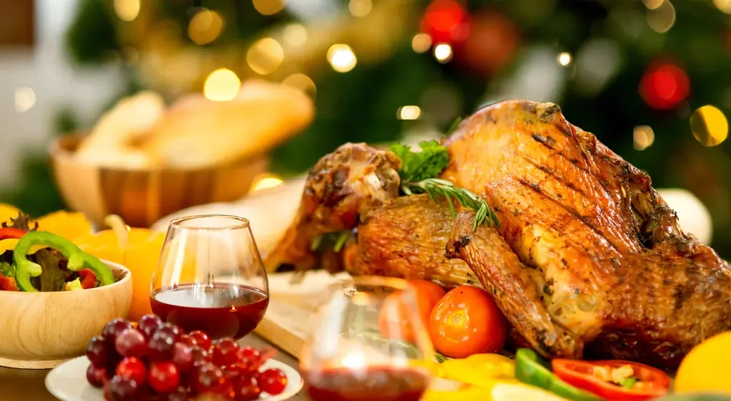 クリスマス期間(12月22日(月)〜25日(木))は、4日間限定で特別メニューを用意します。ローストチキンやブッシュドノエルなど、聖夜を意識した構成で、通常期間とは異なるフェスティブな料理が並びます。