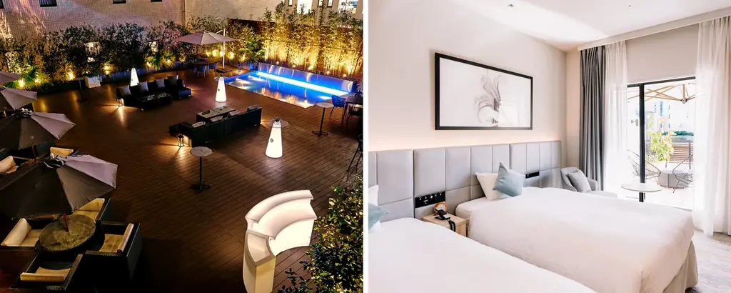 オリエンタルホテル福岡 博多ステーションは、ナチュラルな素材感をアクセントとする客室や、宿泊ゲスト専用のエグゼクティブガーデン、ジムなどを備えています。都市の利便性を持ちながら、滞在者が一息つける施設構成が特徴です。