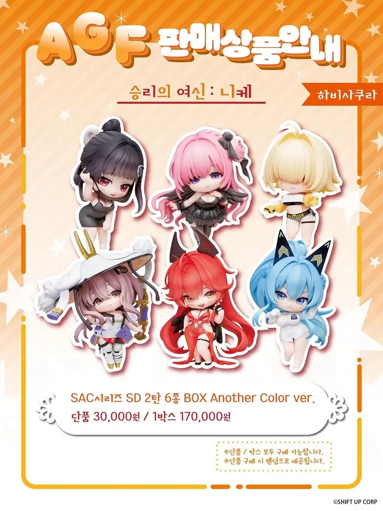 | 主な販売予定商品(例) | 勝利の女神:NIKKE SACシリーズ Vol.2 デフォルメフィギュア 色違い限定版 勝利の女神:NIKKE モダニア:ファースト・アフェクション 1/12 完成品アクションフィギュア その他多数 |