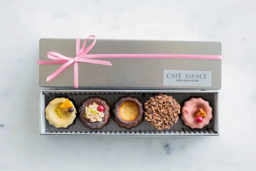 Café ESPACEではアフタヌーンティー以外にも店頭で購入できるスイーツBOXを販売しています。購入はどなたでも可能ですので、贈答用や手土産、自分へのご褒美としての利用が想定されています。