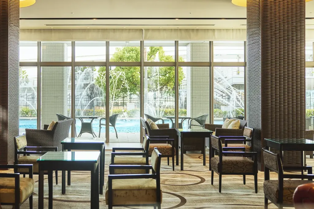 普段はウェディングケーキやデザートを手がける専属パティシエの感性を反映したメニュー構成で、見た目と味わいの両面にこだわったスイーツが揃います。会場は結婚式場内の落ち着いた空間で、噴水の見えるソファ席やオープンキッチンのあるライブ感のある作りが特徴です。
