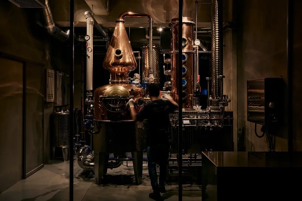蒸溜所は体験型の施設で、バーを併設し観光客と地域をつなぐ拠点を目指しています。設備としてはドイツ製蒸留器「アーノルドホルスタイン」を使用しており、精緻な蒸溜工程によって季節性を引き出しています。