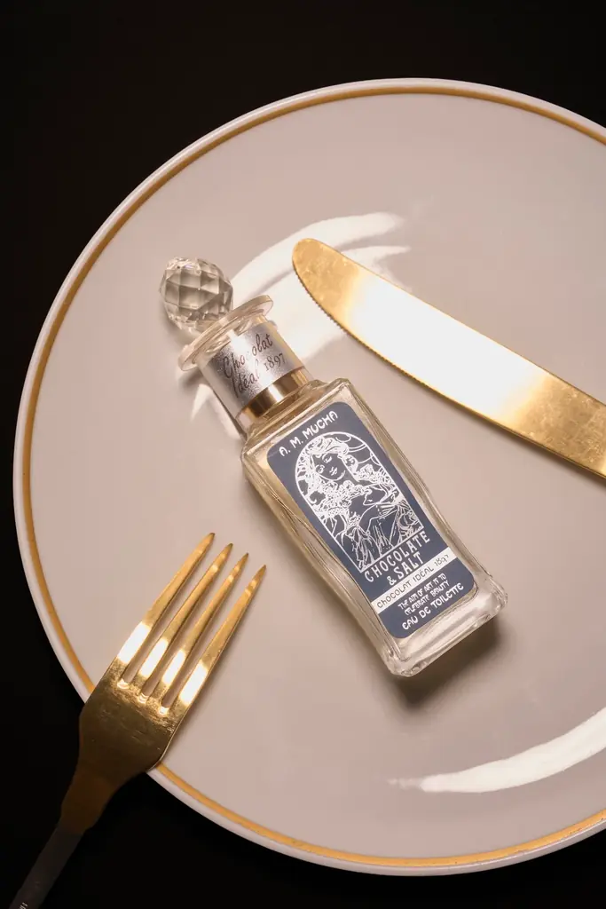 本コラボレーションのテーマとなっているMUCHAの新作オードトワレは「ショコラ・イデアル チョコレート&ソルト 1897」です。香りによる記憶の呼び起こし(プルースト現象)を意識した香調で、マリンノートを含むソルティショコラの豊かな芳醇さが表現されています。