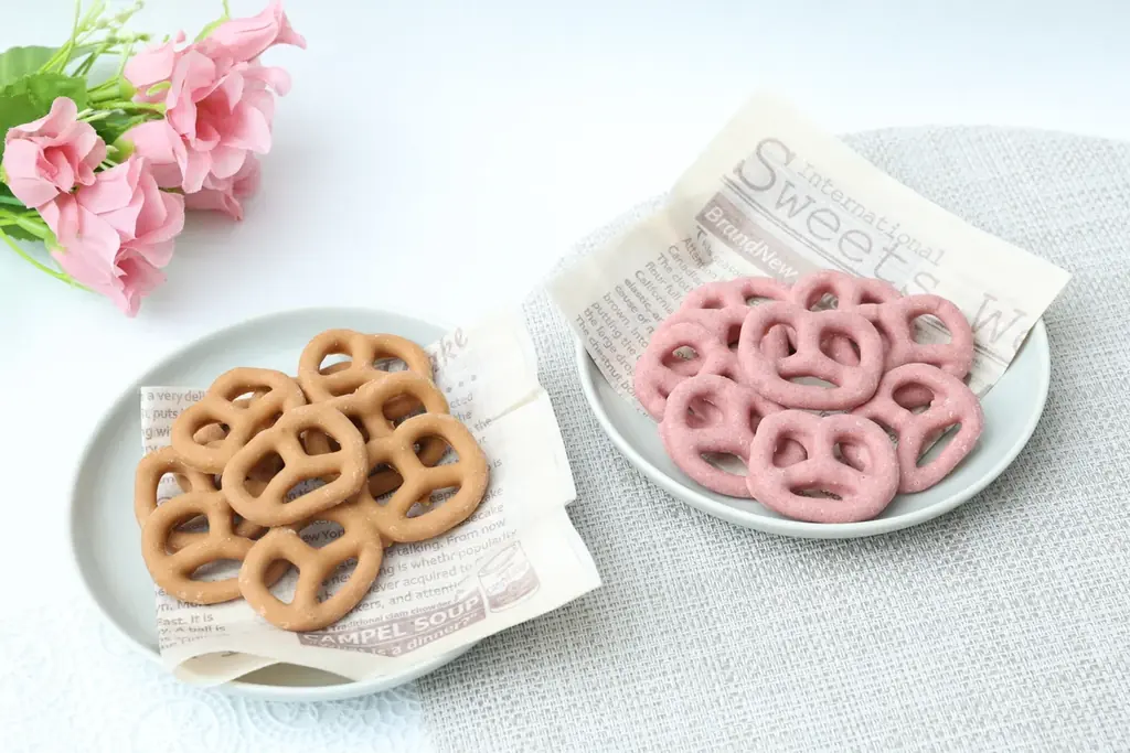 チョコレートのコーティングは、フレーバーに合わせてストロベリーとキャラメルの2種類が用意され、いずれもプレッツェルの塩味とチョコの甘みが織りなす「甘じょっぱさ」を楽しめることが謳われています。見た目の色合いにも配慮され、特にストロベリーはピンクの彩りで視覚的な魅力も備えています。