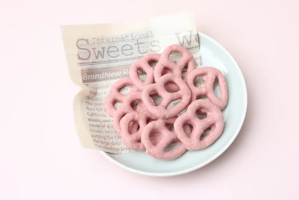 - 特徴:甘酸っぱさのあるストロベリーチョコと香ばしいプレッツェルの組み合わせ。見た目にも配慮されたピンク色。