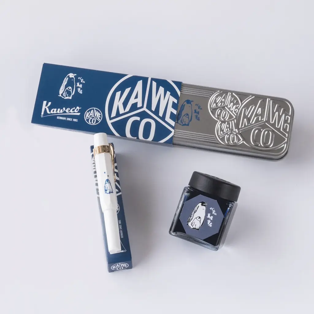 今回の限定販売は、佐久間和子が描いたコウテイペンギンのイラストを施した万年筆・インクセットとボールペン、さらに両方を収めたフルセットの展開があり、ギフト用途やコレクター向けの仕様が整えられています。代官山 蔦屋書店の文具フロアのスタッフもKaweco Sportを日常的に愛用している点が紹介されており、来店記念やお土産としての需要を想定した企画です。