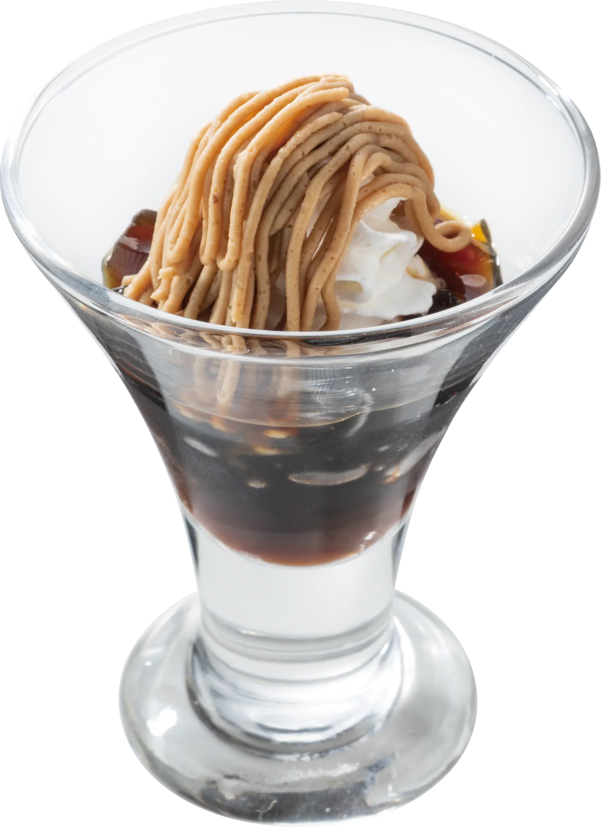 • マロン珈琲ゼリー:199円(税込219円)。イタリア栗のマロンクリームとビターなコーヒーゼリーの組合せ。