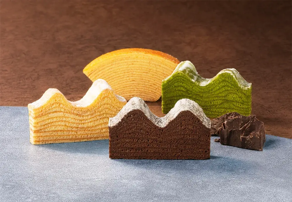 今回の催事で注目されるのは、冬季限定のショコラをまとった2種類のバームクーヘンです。ひとつは神戸阪急初登場の『雪色のマウントバーム』、もうひとつは毎冬人気の『マウントバーム ブラウニー』です。いずれもねんりん家が長時間かけて焼きあげる生地の食感を生かした仕立てとなっています。