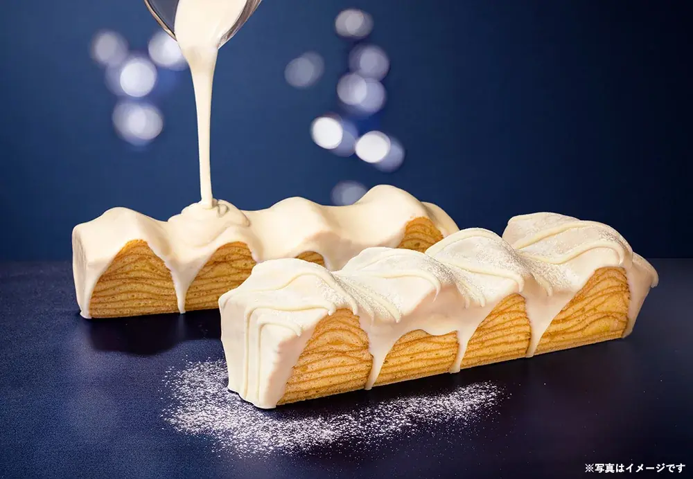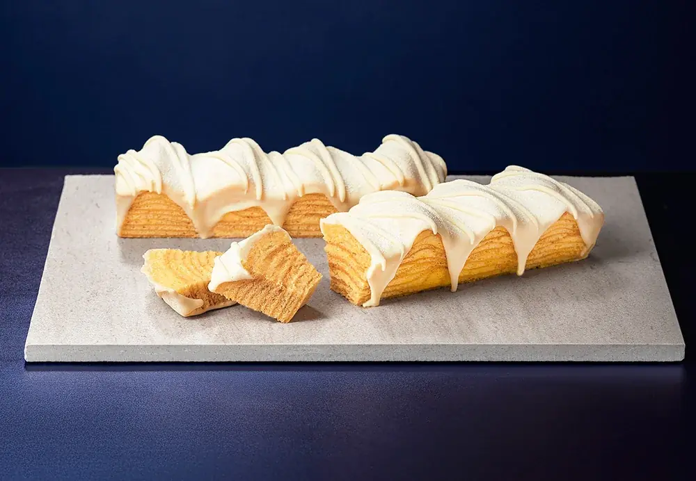 冬仕立てのホワイトショコラがとろりとける、〈マウントバーム しっかり芽〉をベースに北海道ミルクの風味を溶け込ませたホワイトショコラを流し掛けした冬限定のショコラバーム。外はカリッと香ばしく、中はしっとり熟成した食感が特徴です。