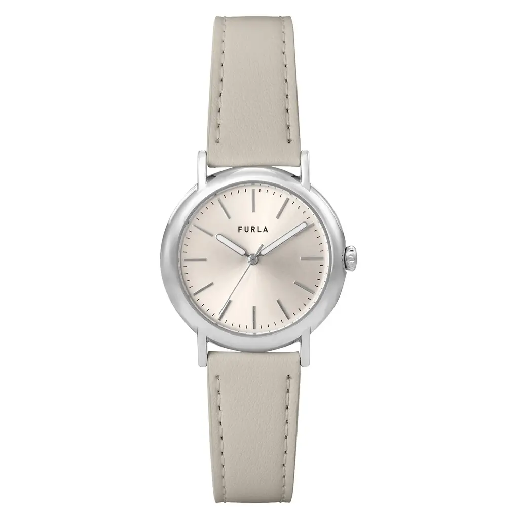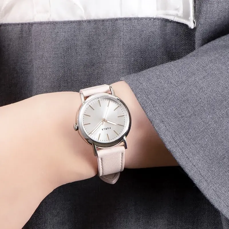 ラグに施されたフルラのアーチロゴとサンレイ加工ダイヤルの組み合わせにより、控えめでありながらアイデンティティが伝わるデザインになっています。ベーシックカラーにより幅広い服装と調和します。