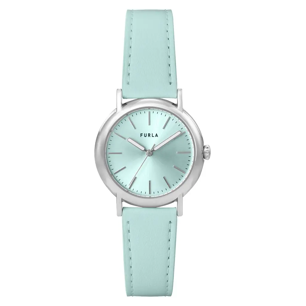 「FURLA EASY SHAPE」はコロンとした女性らしいフォルムが特徴の人気シリーズです。ジャパンエディションでは普段使いしやすいベーシックカラー4色に、コーディネートのワンポイントになる爽やかなミントブルーを加えた計5型を展開します。文字盤はバーインデックスのみのシンプルデザインで、オン・オフを問わず使用可能な設計です。