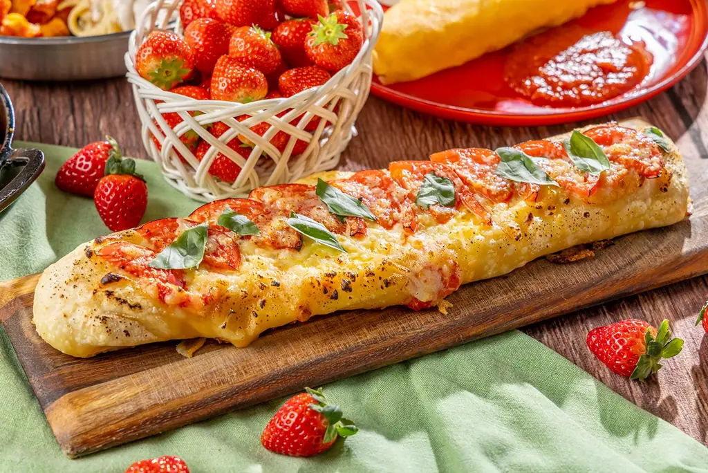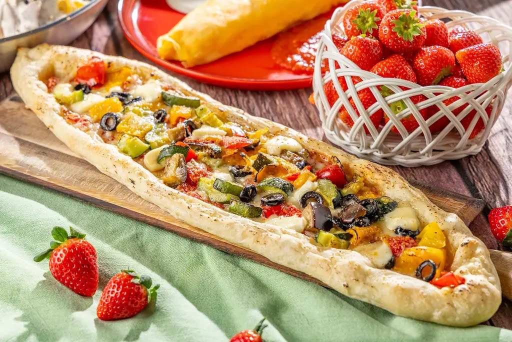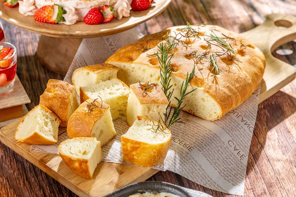 生パスタに合わせるパンとしては、手作りフォカッチャが紹介されています。程よい塩気と香ばしさで、ソースを余すところなく楽しむ名脇役として設計されています。また、ローリングピッツァに加えて新作の「菜園風ピッツァ」もラインアップされ、野菜を多く使った一品が並びます。