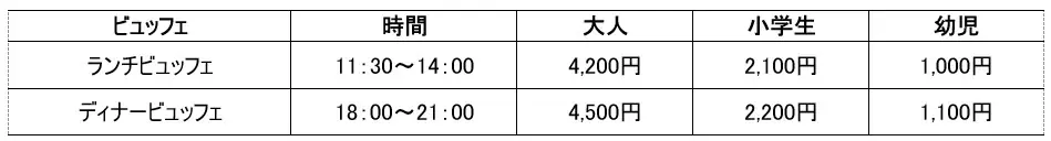 | 料金表記 | 表記料金には税金・サービス料が含まれる(詳細な金額はプレスリリースに記載なし) |