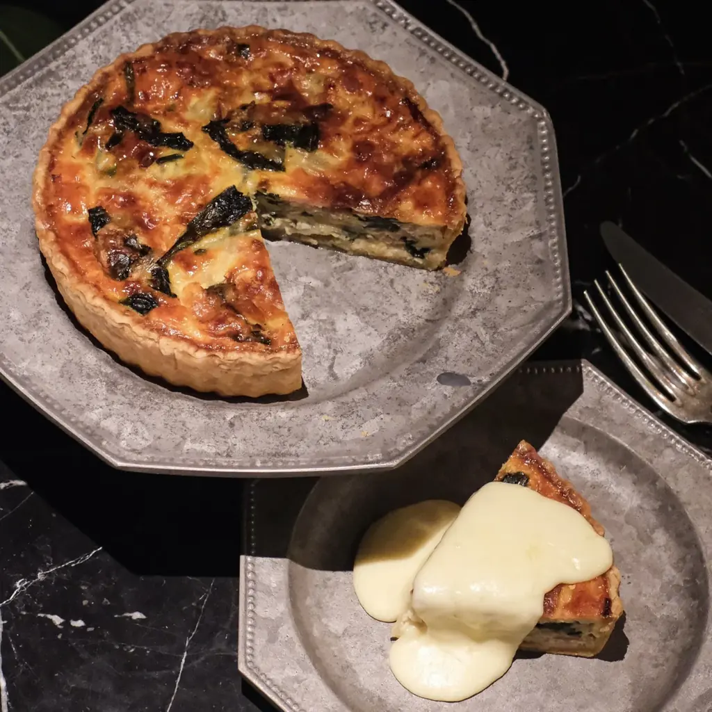 • キッシュロレーヌ 1カット¥900 +チーズソーストッピング +¥500