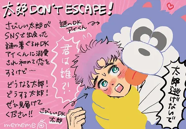 2025年12月1日に刊行されたmememe著『太郎 DON’T ESCAPE!』は、内気な高校生・太郎と、SNSで出会った相手「アイ」、そして誕生日に現れた着ぐるみ姿の男を軸に展開するボーイズラブ(BL)コミックスです。太郎が抱える孤独や人間関係のずれ、SNS上での関係構築とそれに伴う戸惑いが物語の中心に据えられています。