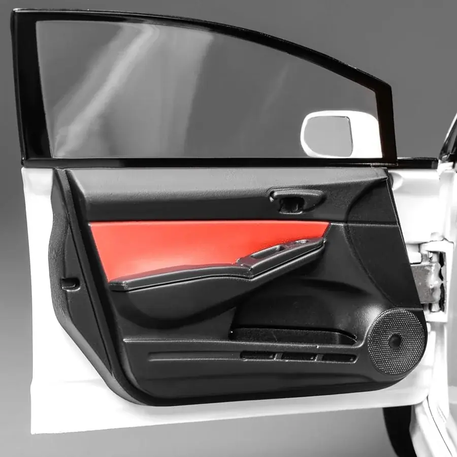 外観は塗装の美しさやパネルラインの再現、バンパーやホイールの造形に重点が置かれています。内装はシートの形状やダッシュボード、ハンドル周りなどを含めて精密に作り込まれており、完成度が高められています。