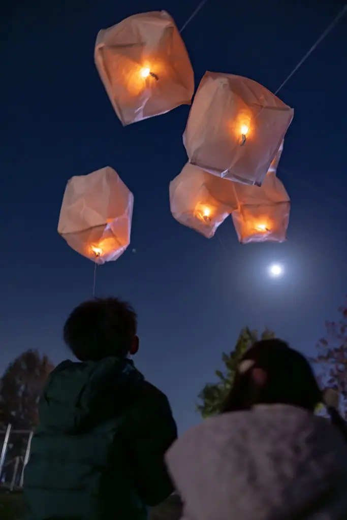 夜空に舞い上がるランタンで幻想的な光景を作るイベントです。LEDライトを使用したランタンはイベント終了後に持ち帰ることができます。指定日程において19:00からの実施です。