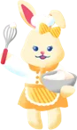 - バニケルさんの妹にあたるパティシエ見習いのキャラクター。洗顔カフェでスイーツをモチーフにした提案と、洗顔の泡立てテクニックを併せて紹介します。