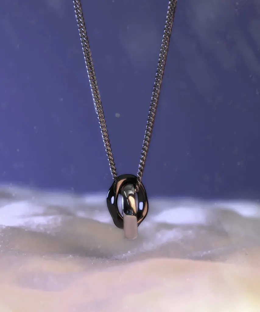 クリスマスシーズンに向けて、贈り物としてのアクセサリー需要を捉えるため、同キャンペーンでは「絆」をモチーフにしたアイテムを前面に打ち出している。海沼流星さんが着用するダブルリングネックレスは、二重構造のリングが重なり合う様を通じて関係性や絆を象徴するデザインだ。
