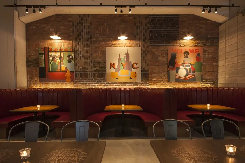 HangOut HangOverはコンセプトとして「世界の文化が混在する街“NEW YORK”のSTREETにフォーカスし、仲間と集い、そして『酔える』All-DAY DINER」を掲げています。店内は大型ガレージをイメージした空間で、ウォールアートやこだわりのBGMが配置され、さまざまなカルチャーが感じられる設えです。