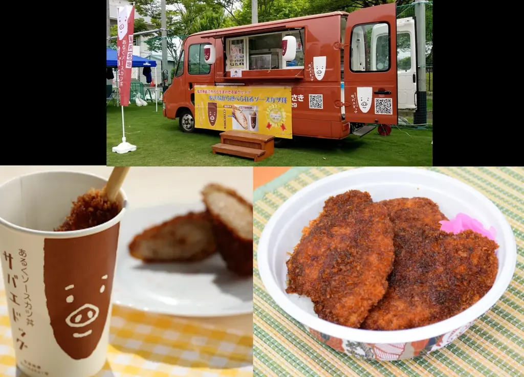 鯖江市にある老舗精肉店による出展。福井名物のソースカツ丼、歩くソースカツ丼サバエドッグ、若狭牛コロッケなどを販売します。30年余りの製法に基づくメニューが用意されます。