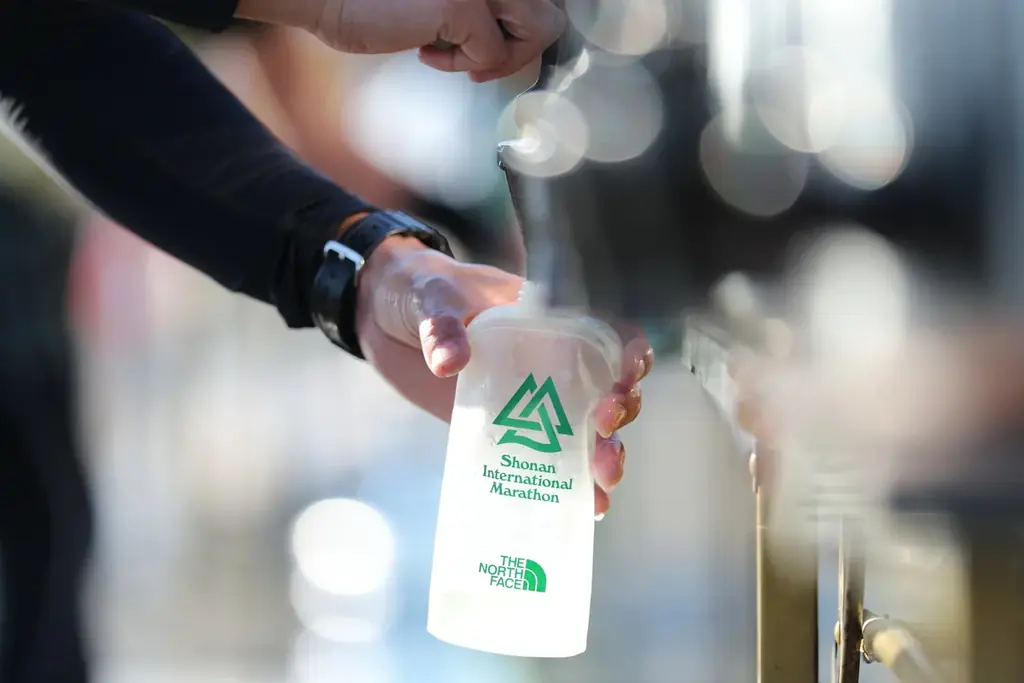 湘南国際マラソンは2022年に「ゴミを出さない大会」へ大きく舵を切り、今回で4年目を迎えました。大会は使い捨てカップやペットボトルを全面廃止し、マイボトル・マイカップ方式を全面採用しています。今回もマイボトル・マイカップを手にしたおよそ23,000人のランナーがスタートしました。