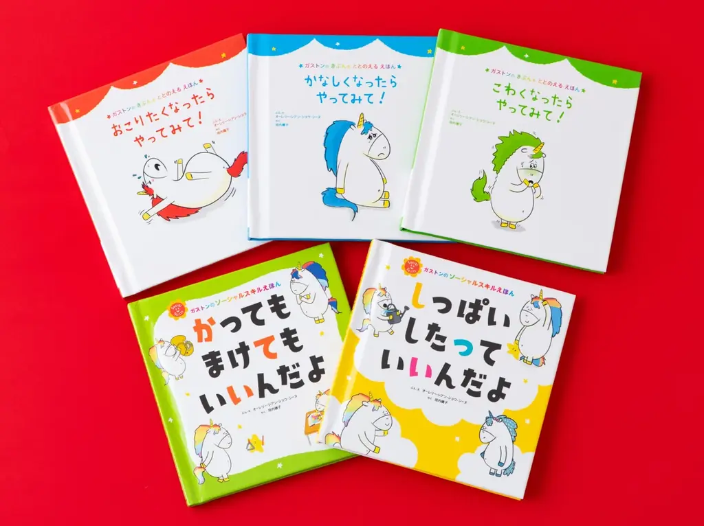 主人公はユニコーンの子ども「ガストン」。ガストンは感情表現が豊かで、気分によってたてがみの色が変わるというビジュアル表現を通して、子どもたちの感情に寄り添う物語が展開されます。本シリーズは国内累計50万部、世界では270万部を超えるヒット作です。