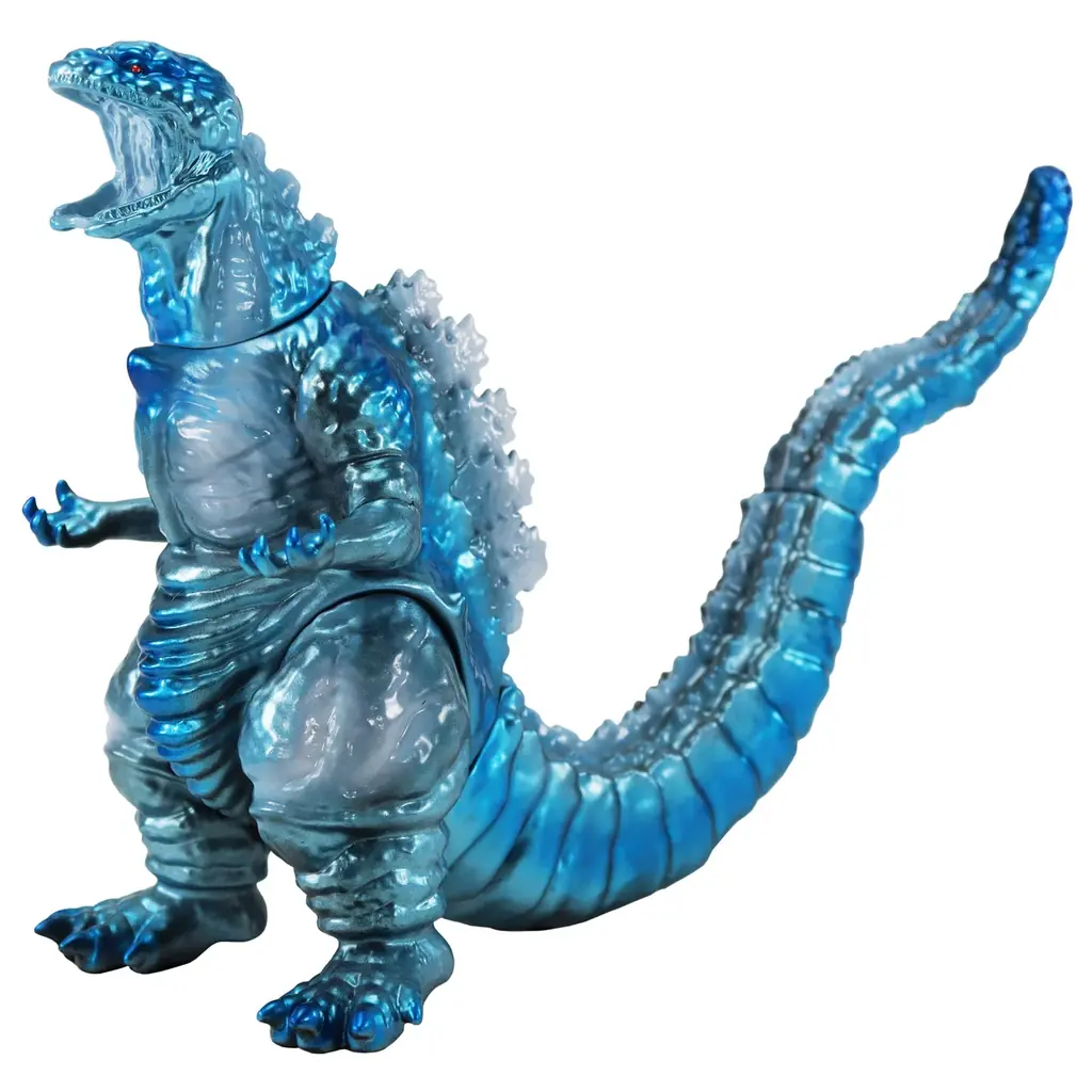造形自体は「ゴジラ(2016)」の特徴を踏襲したもので、今回の別注では特に塗装表現に重点が置かれています。淡いブルーメタリックをベースに、異なる濃度のブルーメタリックを重ねることで立体感と煌びやかさを演出するとともに、ところどころに雪のようなホワイトのハイライトを入れることで「冷ややかな輝き」を表現しています。