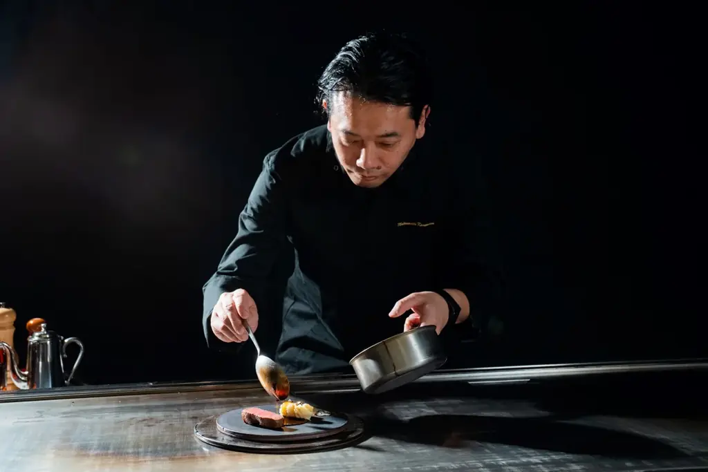 エグゼクティブシェフは松本鐘正氏。肉料理専門店、フレンチ、イタリアンなど多様な現場での経験を持ち、ジャンルを横断する知識と技術を融合させることで、型に拘らないフレンチを追求しています。ゲストとのコミュニケーションを重視し、旅の記憶に残る味を目指す姿勢が特徴です。