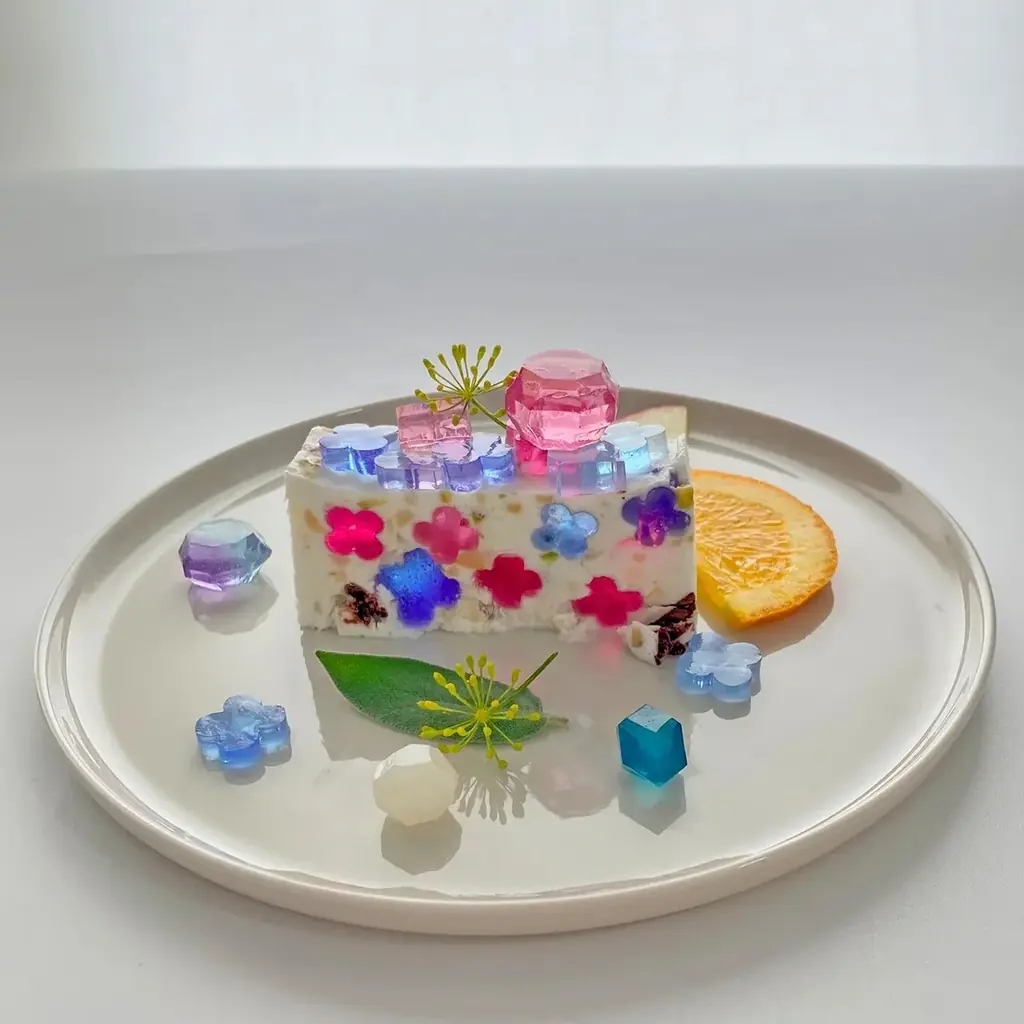 福岡を拠点に「ArtなFoodであそぶ」をテーマに活動するメルティングポットハラペコラボ株式会社(以下、ハラペコラボ)は、宝石のように美しく仕上げたアイスケーキと、鉱物を思わせる琥珀糖を定期的に届けるサービスを開始しました。公式オンラインストアにて、2025年12月5日~12月15日の期間で予約を受け付け、2026年1月末より発送開始のスケジュールです。