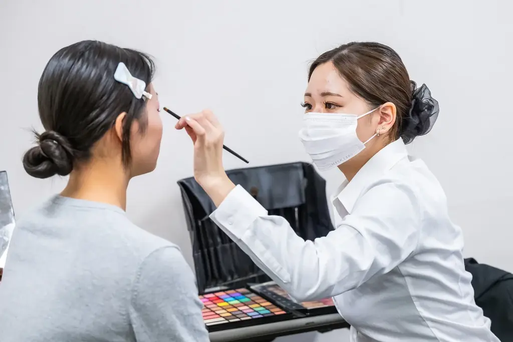 列車内という特殊な環境は、座席の狭さや通路の幅、列車の運行ダイヤに合わせた時間管理など、通常の舞台とは異なる制約が多く存在します。麻生専門学校が重視する「実践力を高める教育」の場として、学生たちは状況に応じたヘアメイク技術や衣装管理、着付けのスピード、来場者や通行人への配慮まで、多面的なスキルを現場で磨きました。