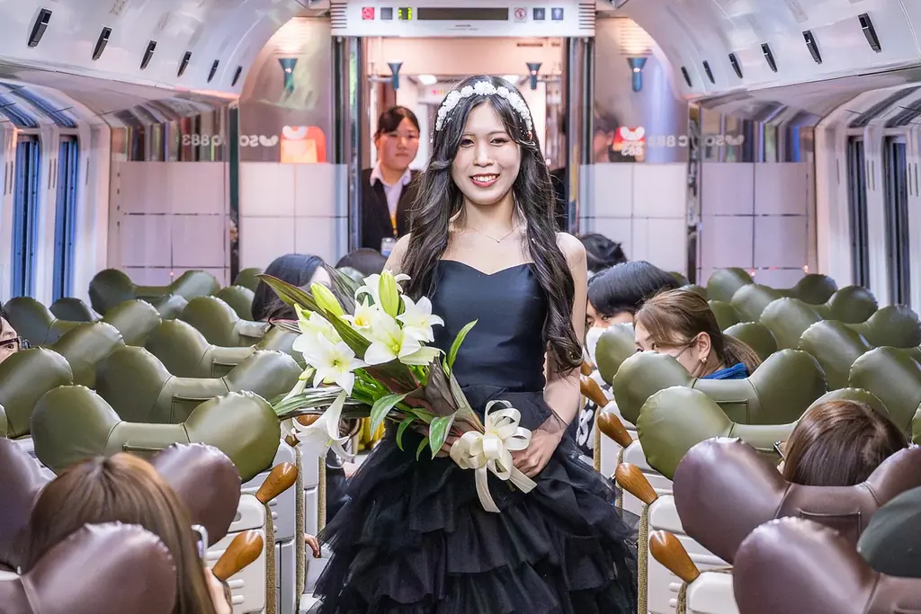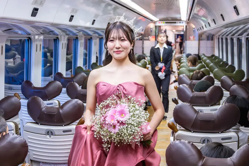 列車の通路がランウェイに変わった一日 ― 博多駅で実施された特急ソニック車内ウェディングファッションショー