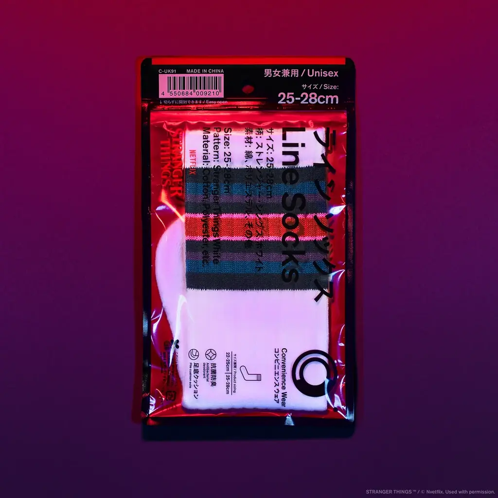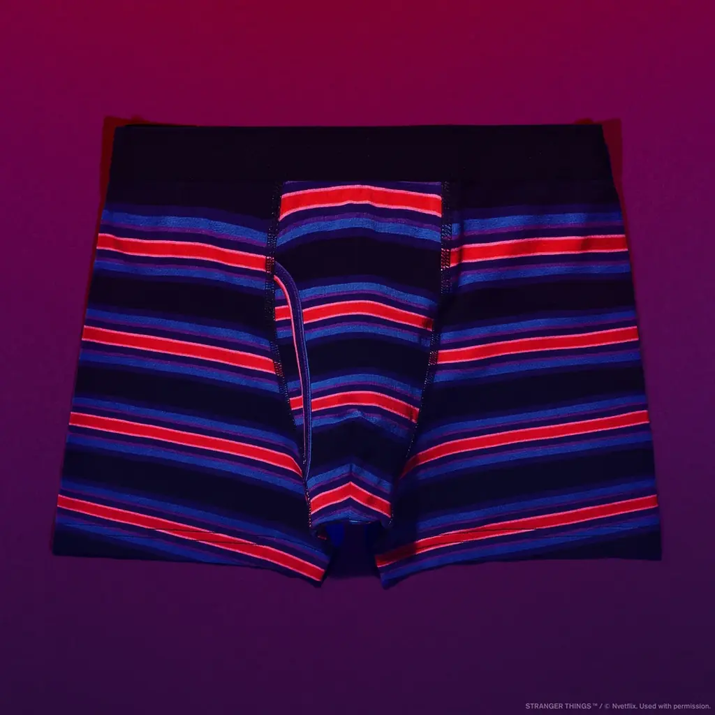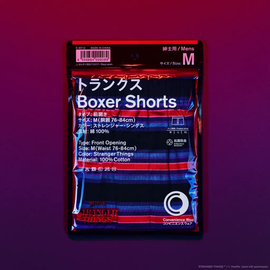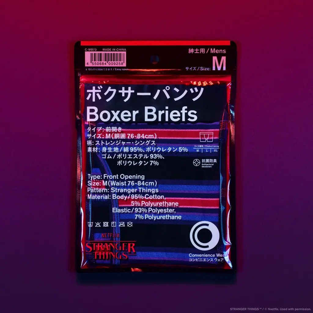 - 内容:『ストレンジャー・シングス』をモチーフに配色したボクサーパンツ。抗菌防臭加工が施され、ニオイが気になりにくい仕様。