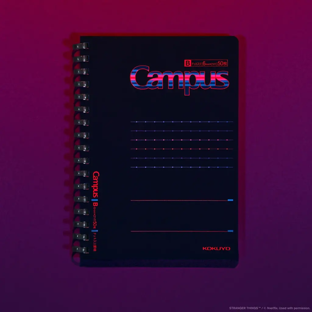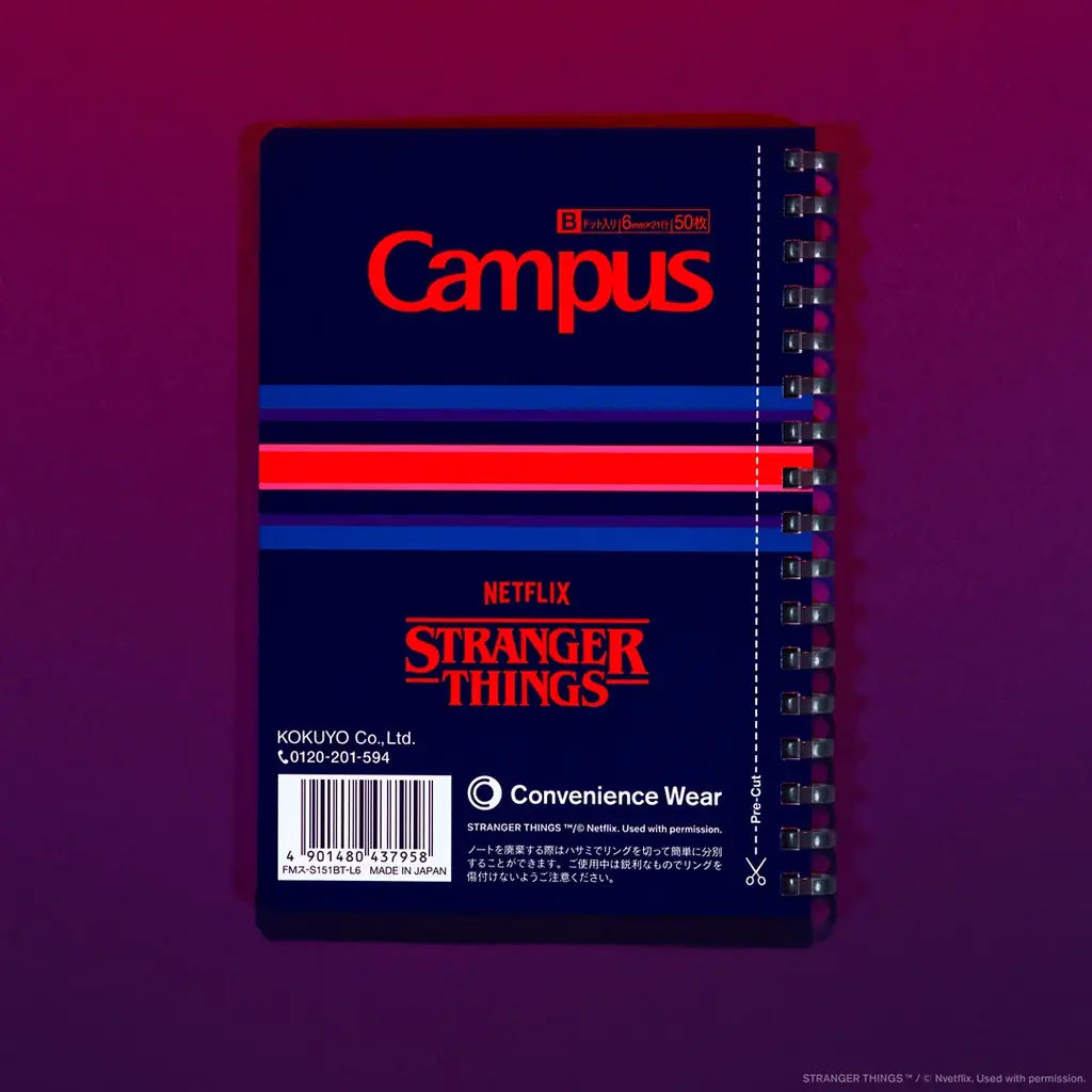 - 内容:『ストレンジャー・シングス』をモチーフに配色したソフトリングノート。