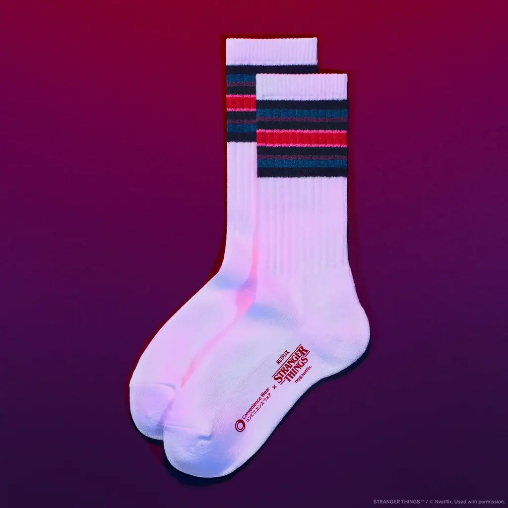 - 内容:『ストレンジャー・シングス 未知の世界』をモチーフに配色。足底にコンビニエンスウェアとストレンジャー・シングスのWネームのラバープリントを施す。