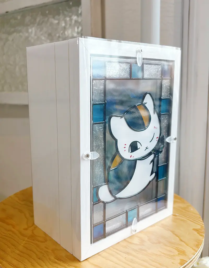 閉じた状態でもニャンコ先生のグラスアート面が表に来る設計となっており、W12.2cmのコンパクトサイズでデスクや棚の限られたスペースにも飾れる。屋内のさまざまな場所で季節や時間帯に応じた鑑賞ができる点が特徴である。
