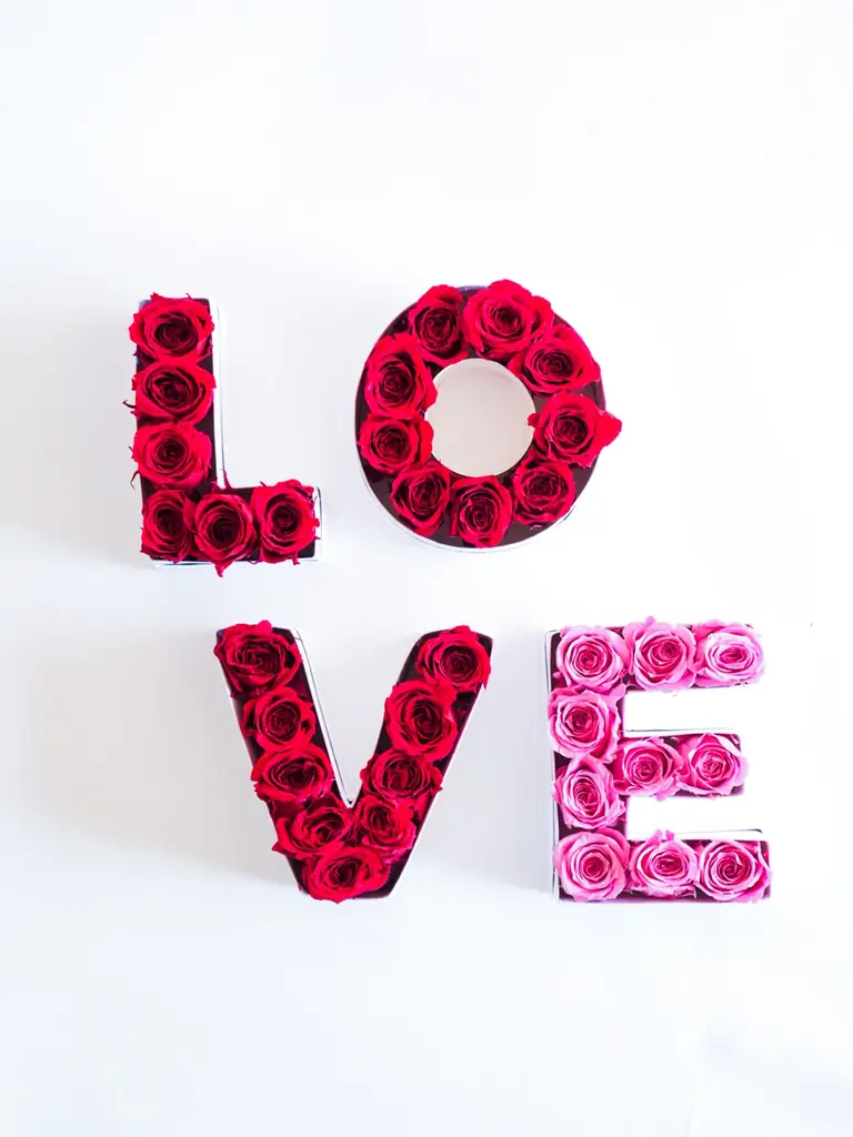 使用されているのは生花の美しさを留めたプリザーブドフラワーのバラです。専用の文字箱に丁寧にアレンジされており、水やりなどの手入れを必要としません。
