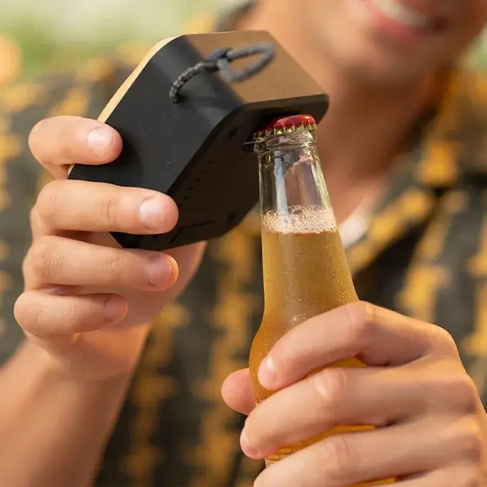 ROOTSは本体にボトルオープナーを内蔵しており、屋外での利用時に飲料の開栓と音楽再生を同時に行える設計になっています。キャリーハンドルにより持ち運びが容易で、ハンドキャリーでの移動時にも落下しにくい作りとなっています。